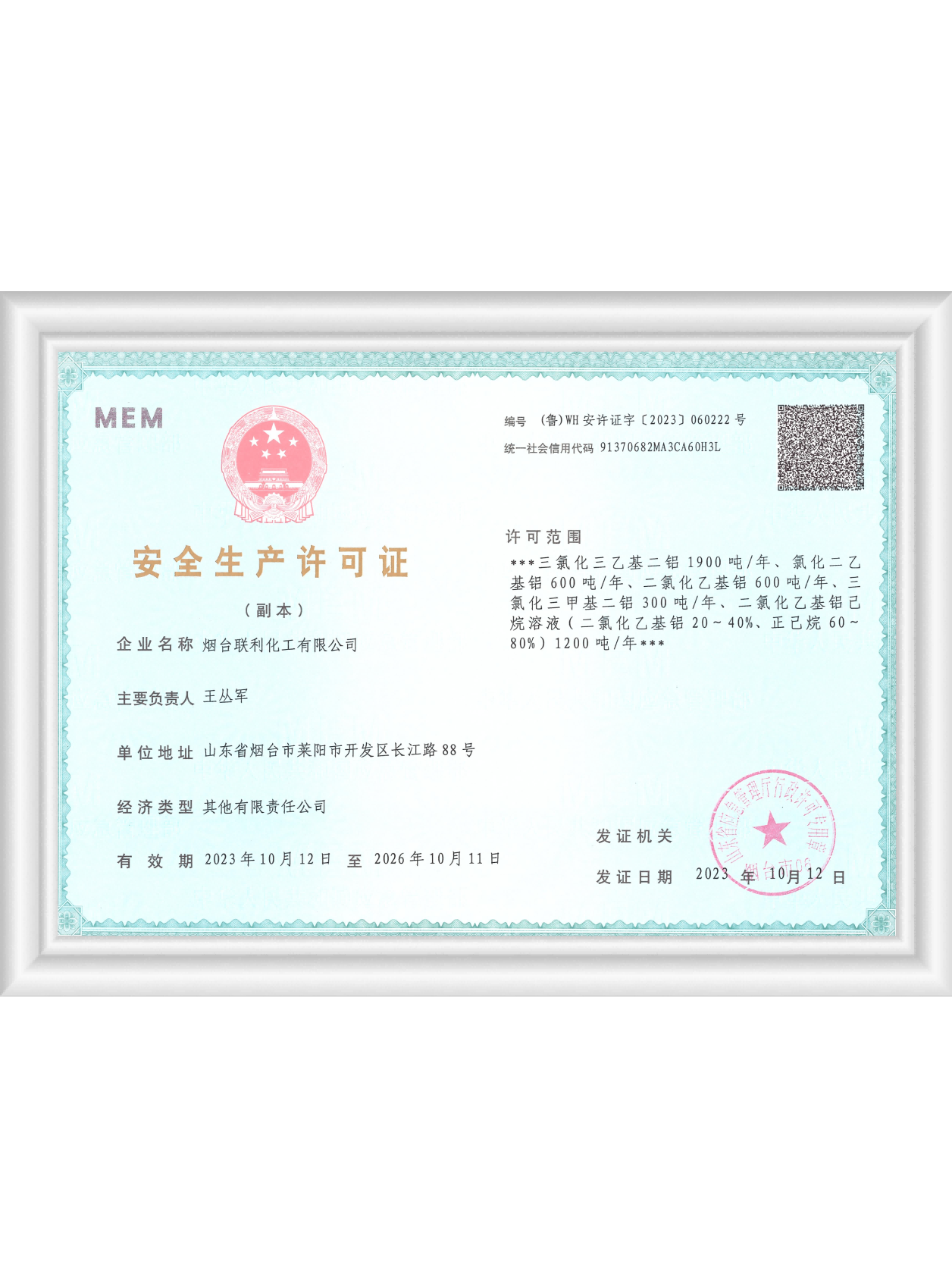 煙臺聯利化工有限公司成立于2016年5月,位于煙臺市萊陽經濟開發區長江路88號,公司前身為1988年北京燕山石化公司技術轉讓成立的煙臺燕德化工有限公司。